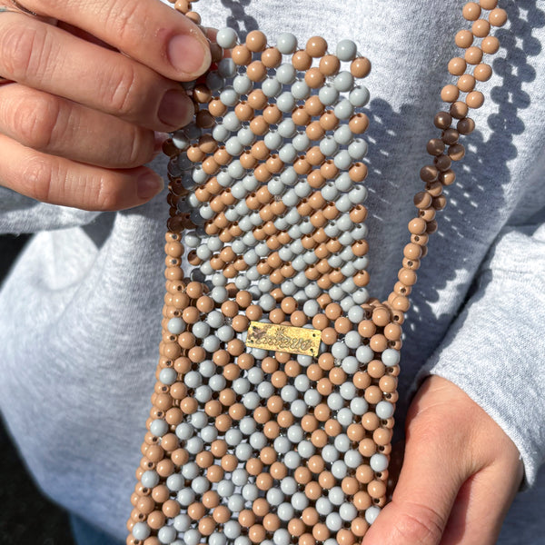 小物や鍵などが入るハンドメイドのビーズバッグです。バッグ本体は小さめで、可愛いサイズ感となっています。荷物をあまり持ちたくない時や、旅先でのお出かけにもオススメです。
