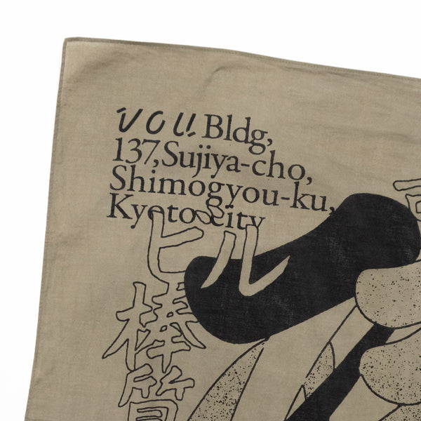 京都・haru nomuraによる手染め、愛知・Maizon de Zansuによるプリント、このタッグの手仕事によってプレミアムなバンダナに仕上がりました。長く付き合う事のできる一枚です。