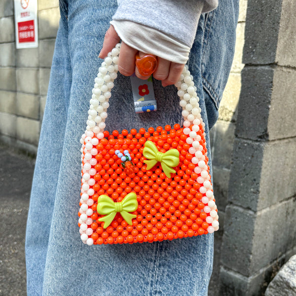 mizuebagのバッグに、チャーム付き仕様の新作が登場しました。こちらはハンドバッグタイプとなっています。