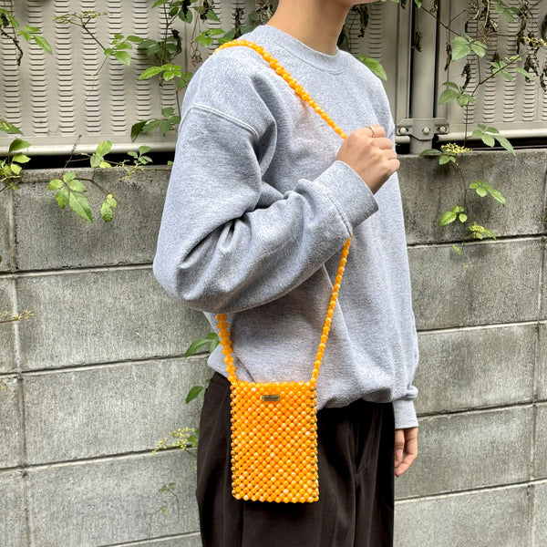iPhoneをはじめスマートフォンを収納できるハンドメイドのビーズバッグです。色んなサイズに対応できるように少しゆとりのある大きさとなっています。専用のボックスと袋に入れてお届けします。