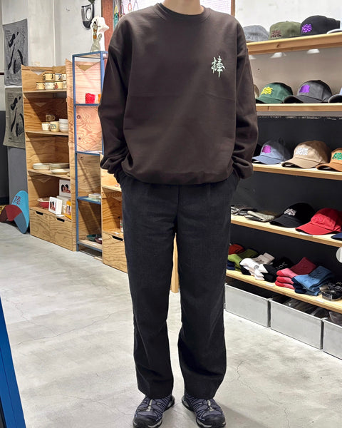 シンプルな「棒」を刺繍したスウェットの2025新色。裏起毛生地で暖かさを確保しつつ、厚すぎない身軽なボディなので、冬はもちろん、春先や秋口にも活躍してくれます。