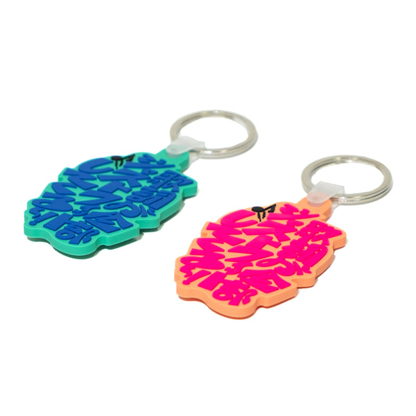 札幌・Salonタレ目との久し振りのコラボアイテム!京都の某カラオケスナックで発せられたVOU/棒オーナーの名言(迷言?)が刻まれたラバーキーホルダーは、酔いがまわって饒舌になっちゃう、あの良い状態をビジュアル化したアゲめでポップなデザインに!