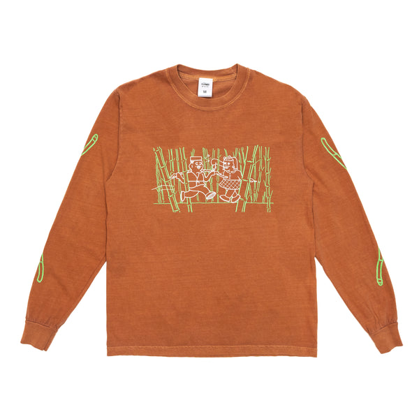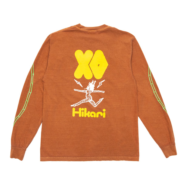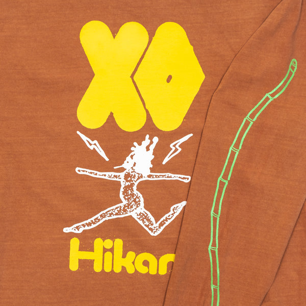 福岡のアーティスト・NONCHELEEEの手掛けた「XO光」イラストを、正面/背面/両袖にたっぷり落とし込んだロンT。そのインパクトとは裏腹に、生地は柔らかく古着のような風合いで、ラフに着用できます。