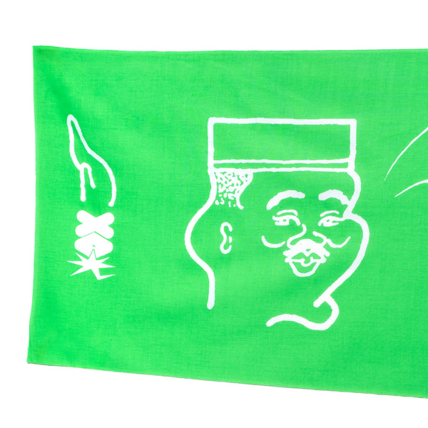 福岡のアーティスト・NONCHELEEとのコラボアイテム。良い塩梅のグリーンカラーの手ぬぐいです。